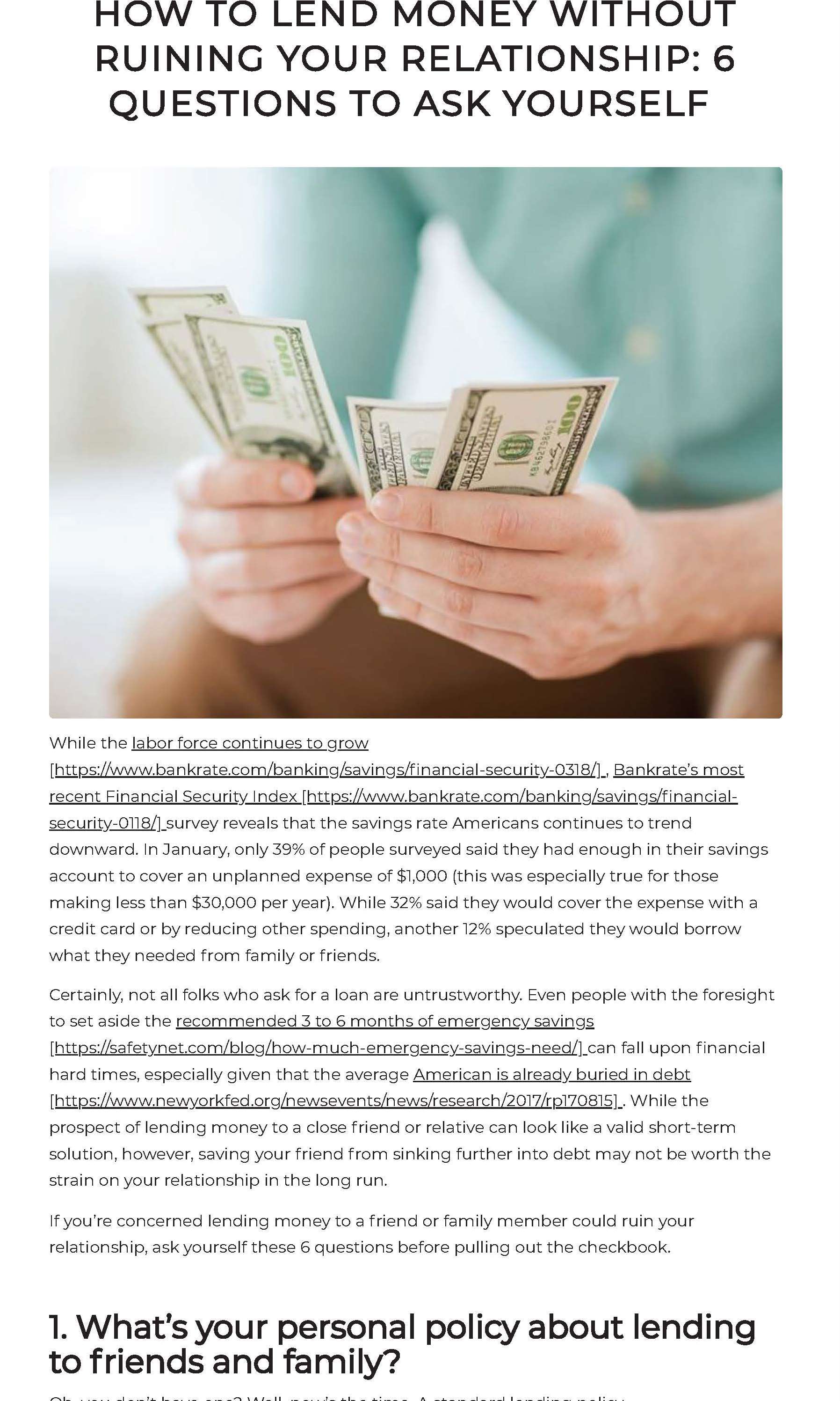 Blog Post: Lending Money to Friends and Family