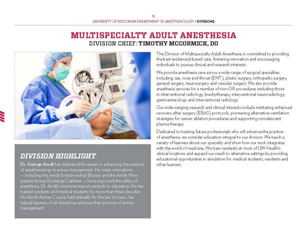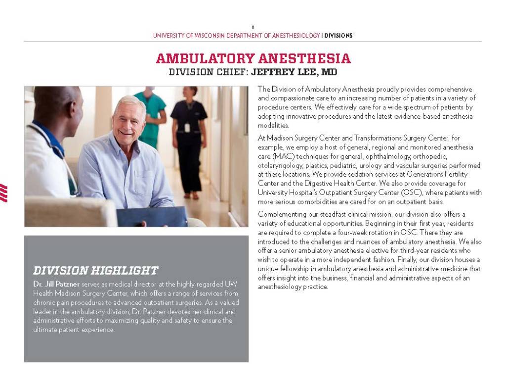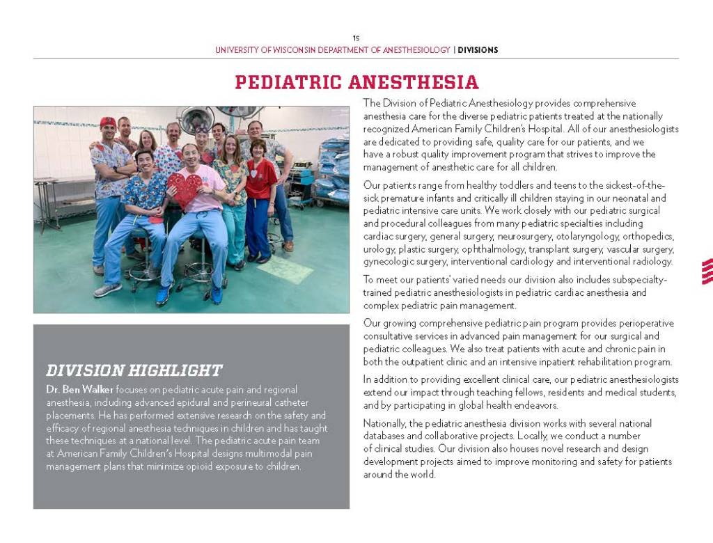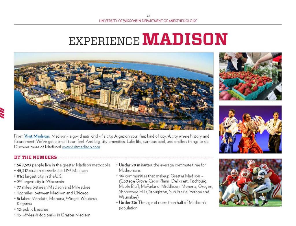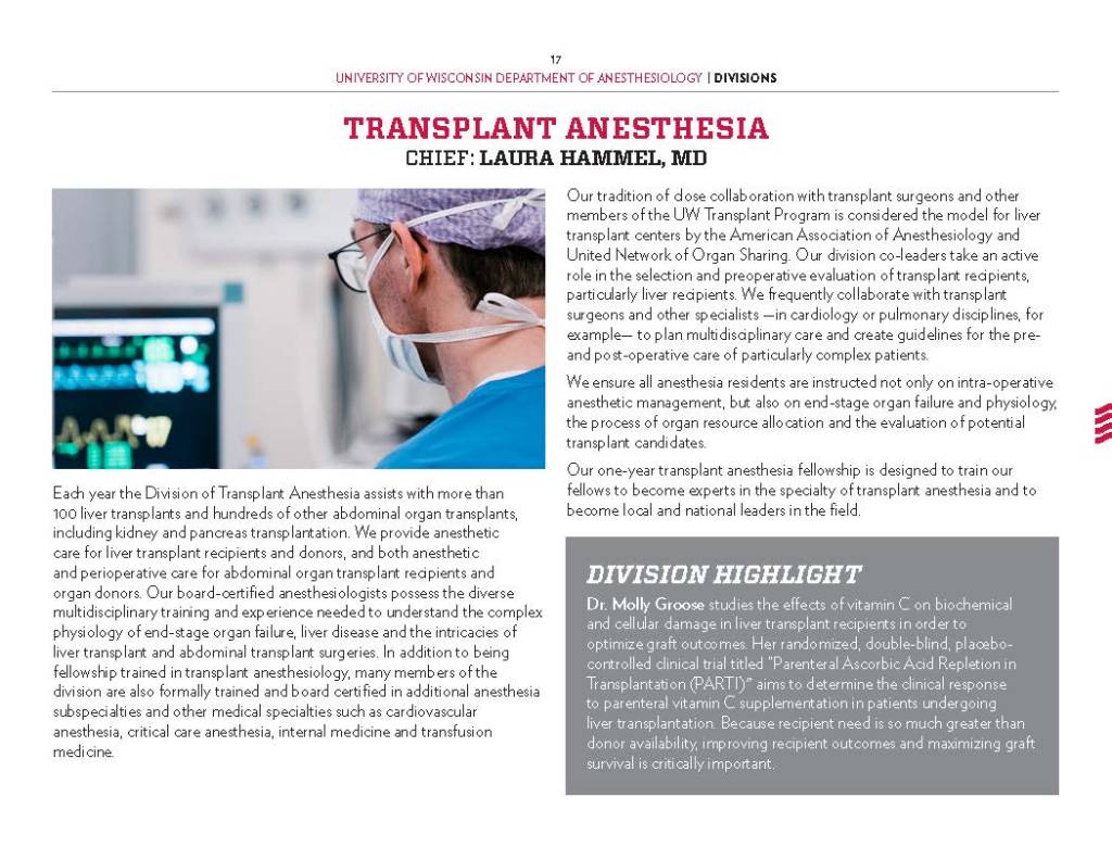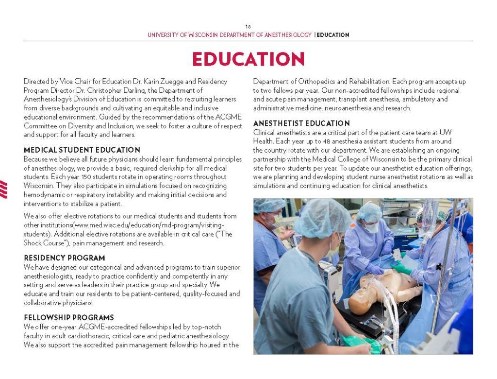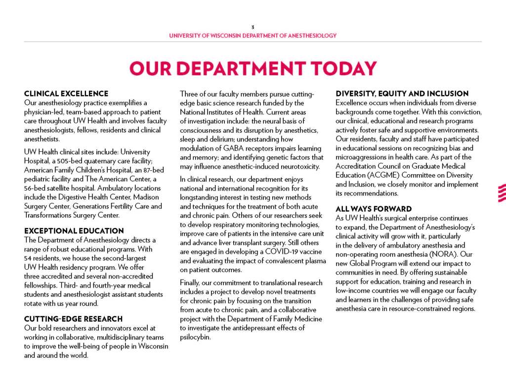 Copy Writing and Editing – Department Profile education, health care, program reports, promotional materials, School of Medicine Alumni Quarterly, UW-Madison UW-Madison School of Medicine and Public Health Department of Anesthesiology