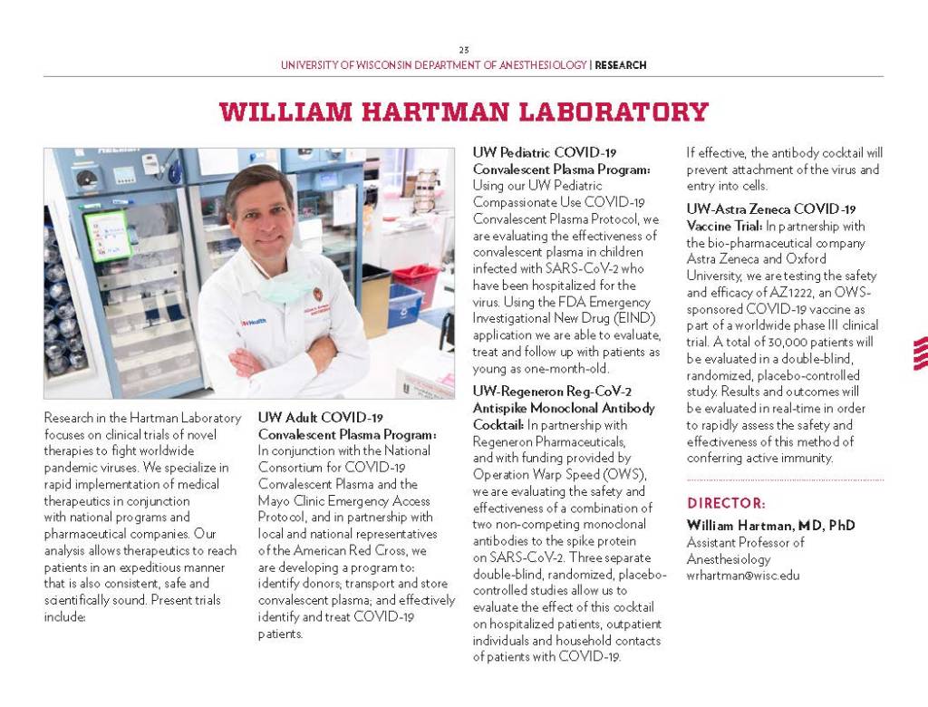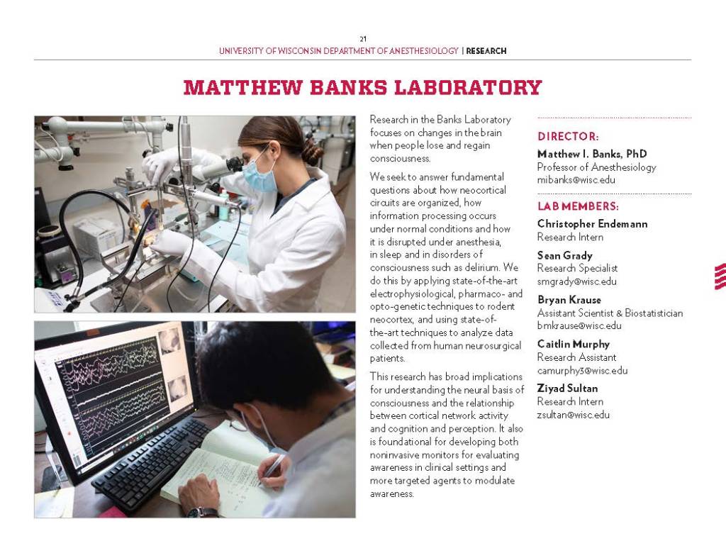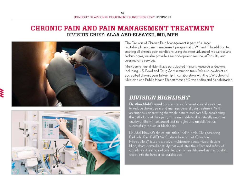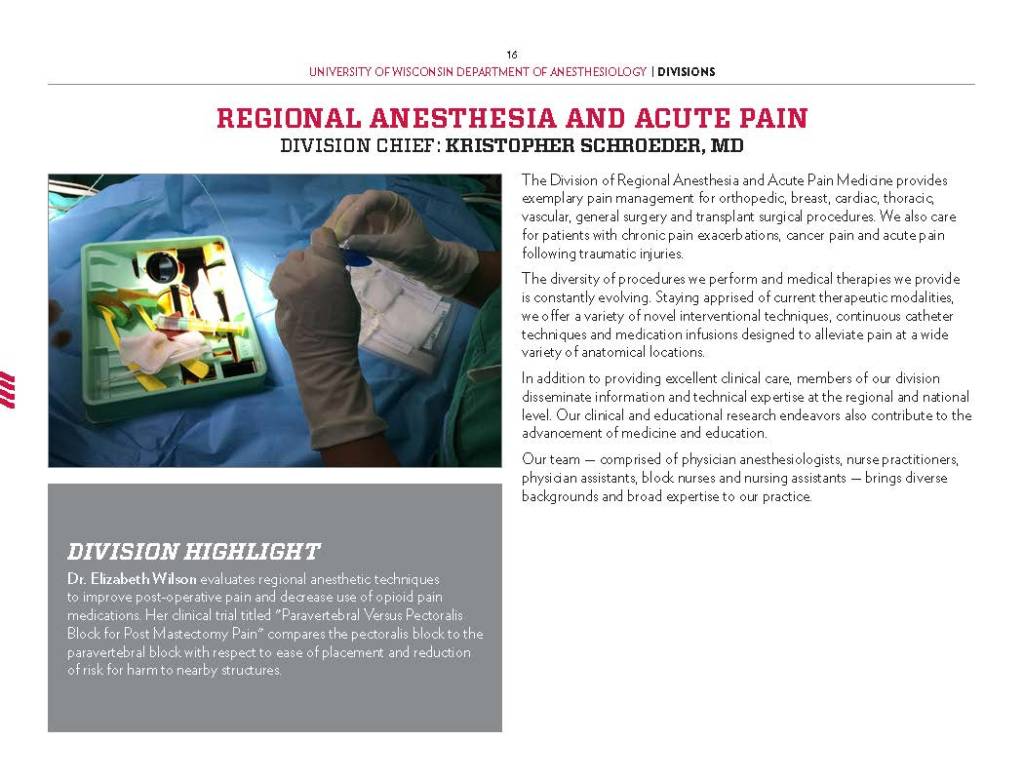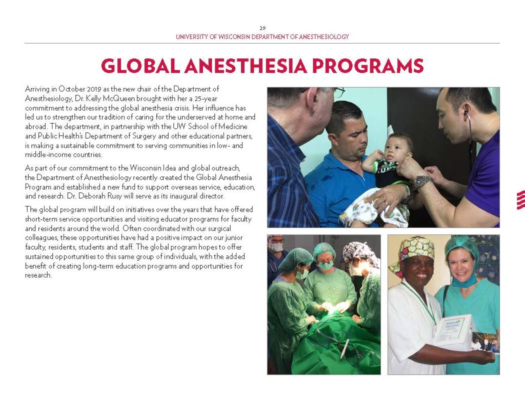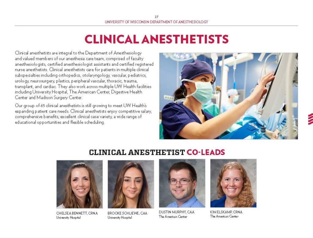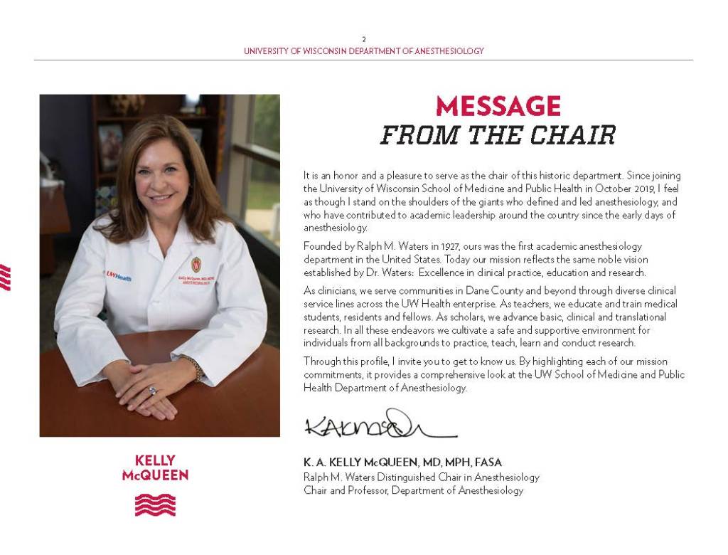 Copy Writing and Editing – Department Profile education, health care, program reports, promotional materials, School of Medicine Alumni Quarterly, UW-Madison UW-Madison School of Medicine and Public Health Department of Anesthesiology